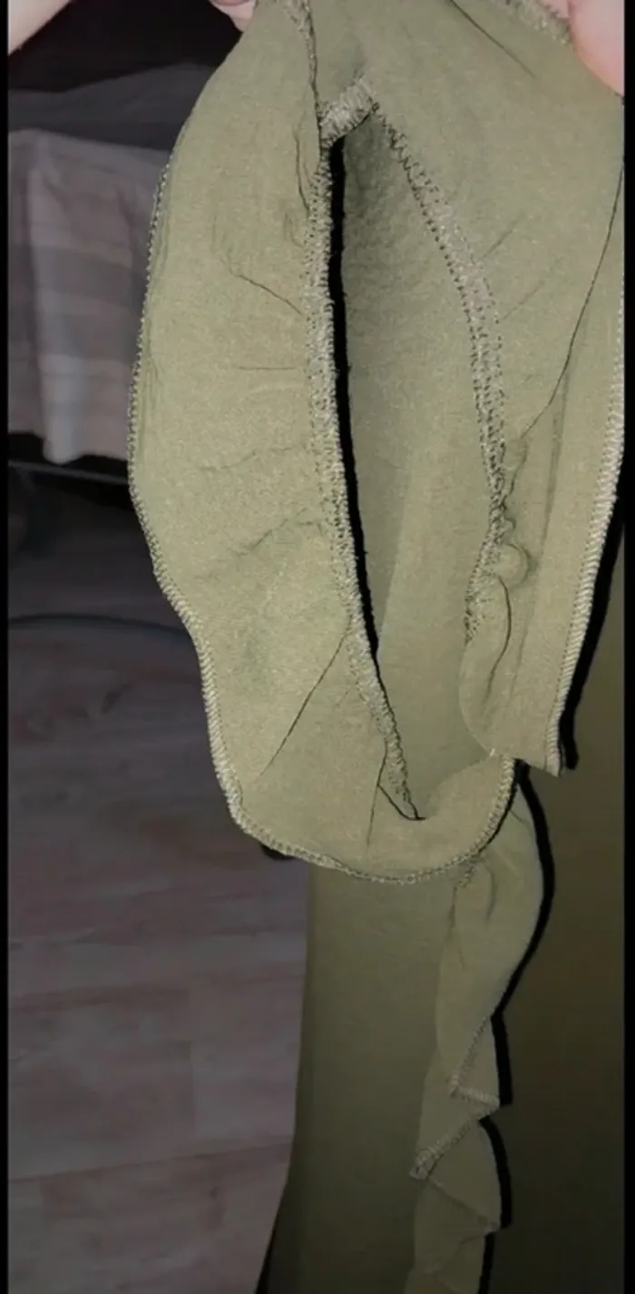Robe kaki taille unique jusqu'au 46 neuve jamais portée. Froufrous sur les côtés. - photo numéro 3