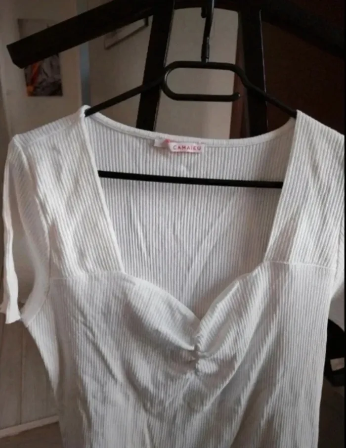 Haut Camaïeu blanc neuf jamais porté taille L mais étiquette coupée.