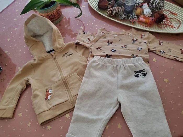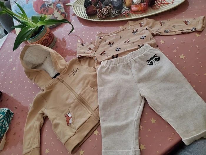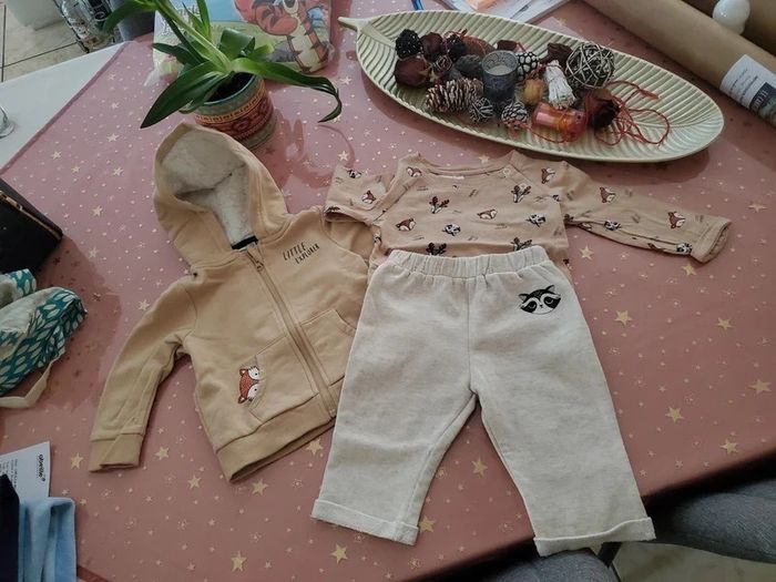 Ensemble 3 pieces: gilet avec capuche fourrée. Tee-shirt manches longues et pantalon Marque: P'tit Bisou Taille 9 mois Juste lavé jamais porté Idéal cadeau 🎁 #sabrina66839mois