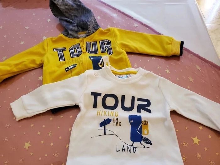 Ensemble garçon 3 pièces : gilet avec capuche, pull et pantalon jogging Taille 6-9 mois De stelle&Pupi En excellent état et encore avec sa boite d'origine idéal pour cadeau #sabrina66836mois #sabrina66839mois
