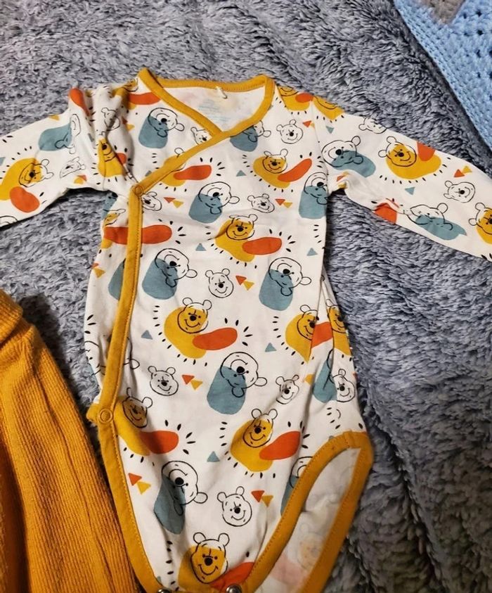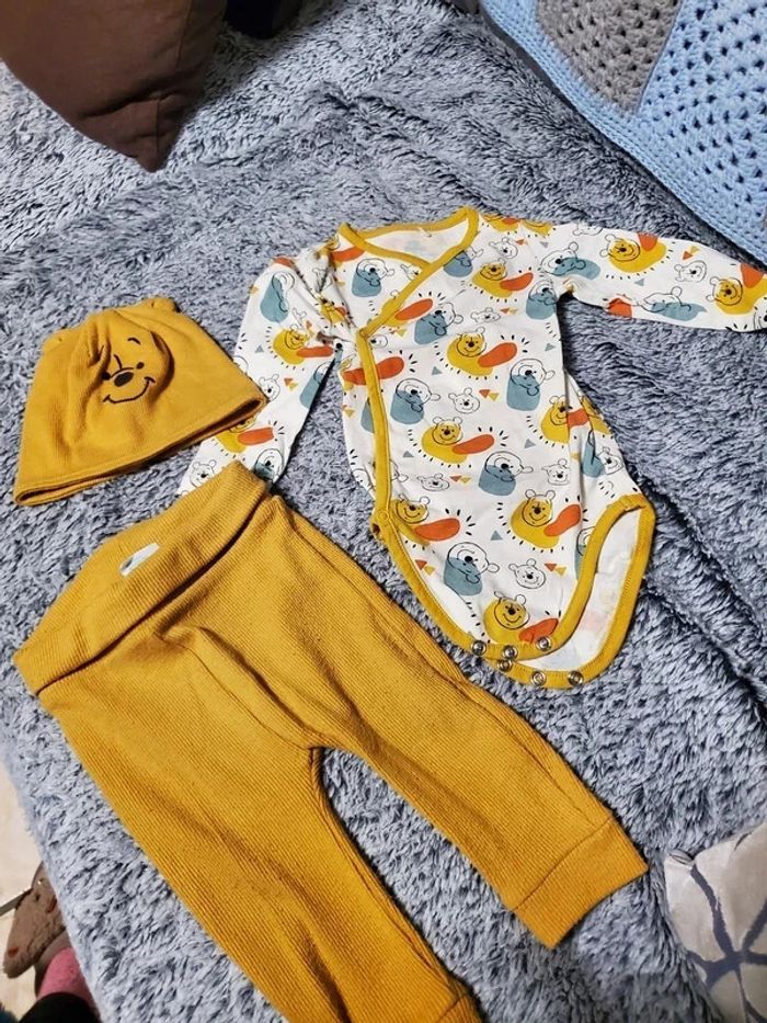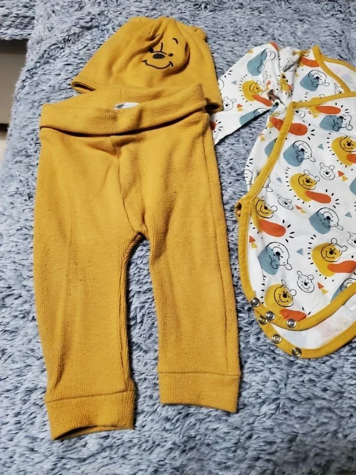 Ensemble 3 pièces : body, pantalon leggings et bonnet Thème Winnie l'ourson Couleur moutardes De Disney baby orchestra Taille 6 mois: 67 cm En très bon état #sabrina66836mois