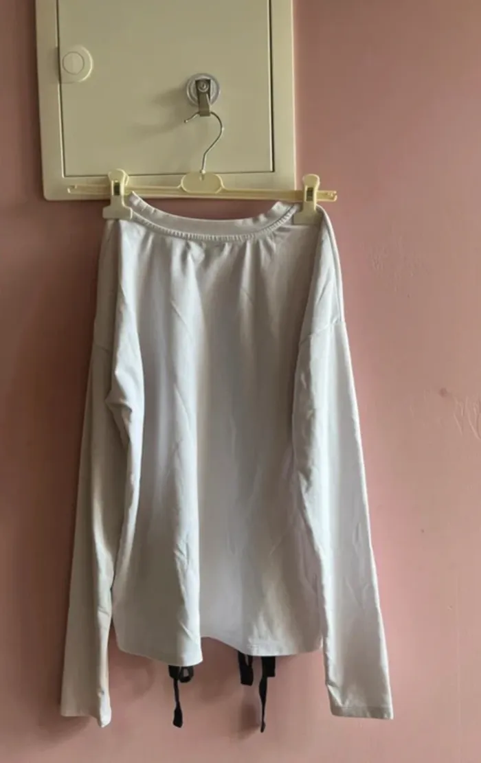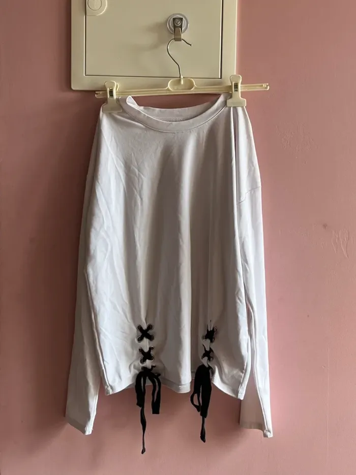 Haut blanc avec des lacets noirs et manche longue - photo numéro 1