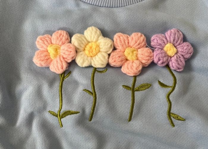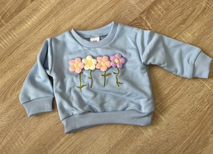 Sweat-shirt enfant fille manche longues col rond, couleur bleu ciel avec fleurs. Taille 3/6mois Article neuf jamais porté.