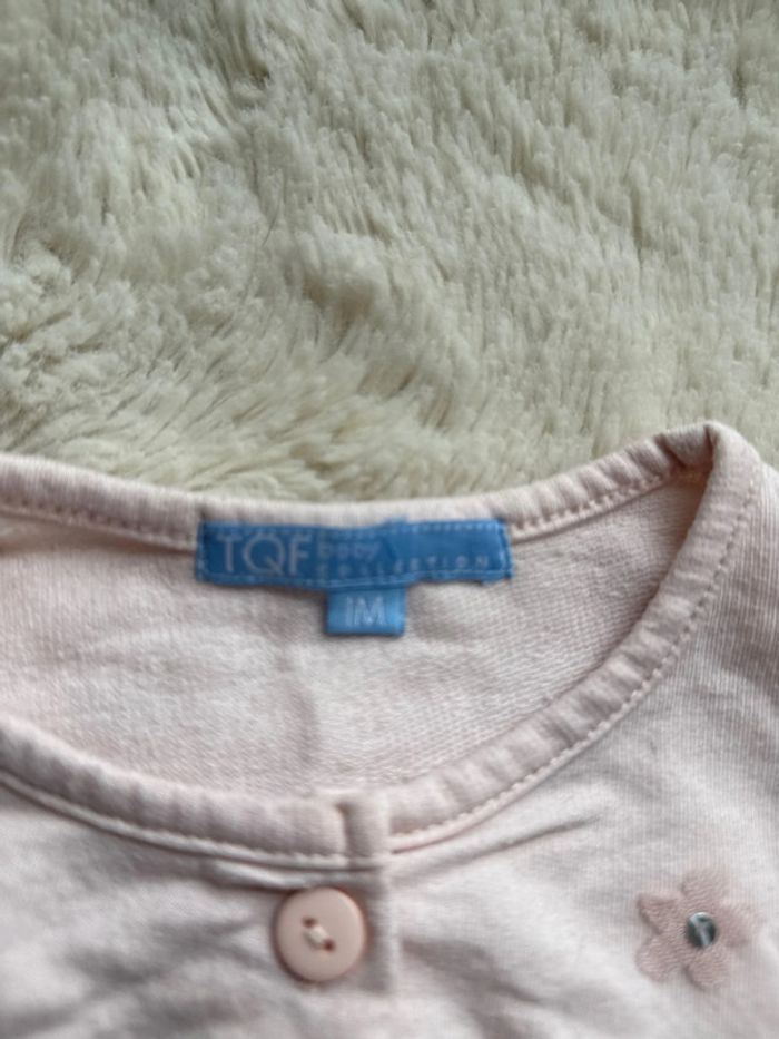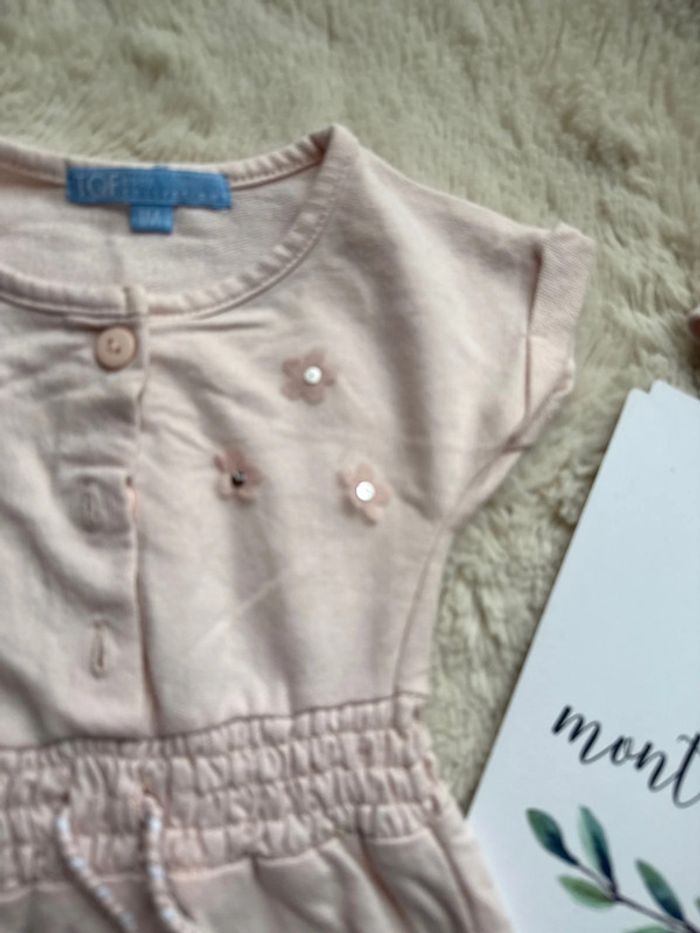 Combinaison salopette pantalon à manche courte rose fleur TQF 1 mois et son bandeau à cheveux - photo numéro 3
