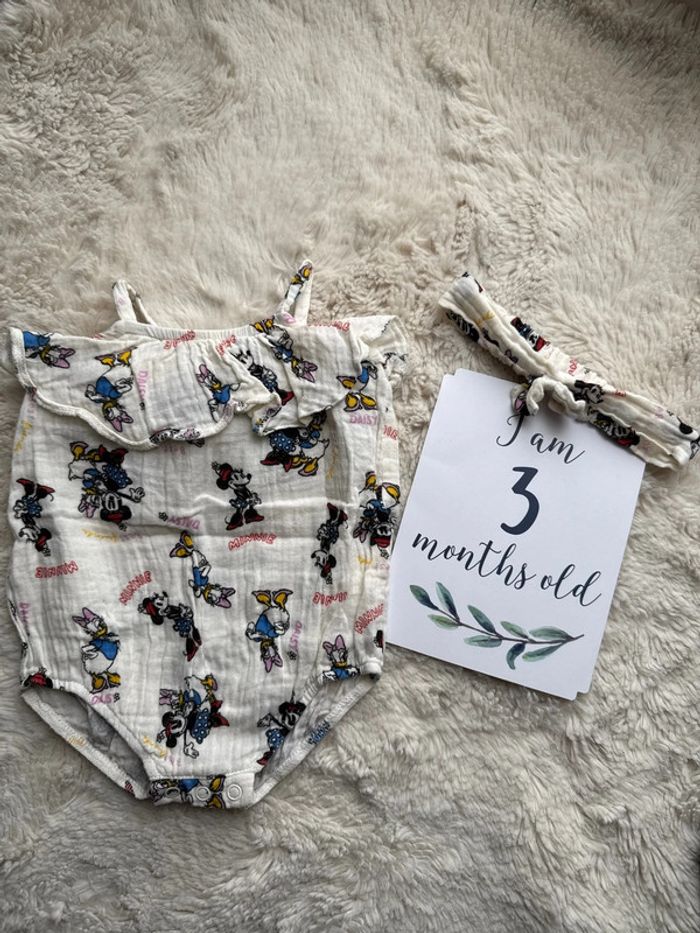 Barboteuse body Minnie Mouse Daisy Disney et son bandeau à cheveux 3 mois - photo numéro 1
