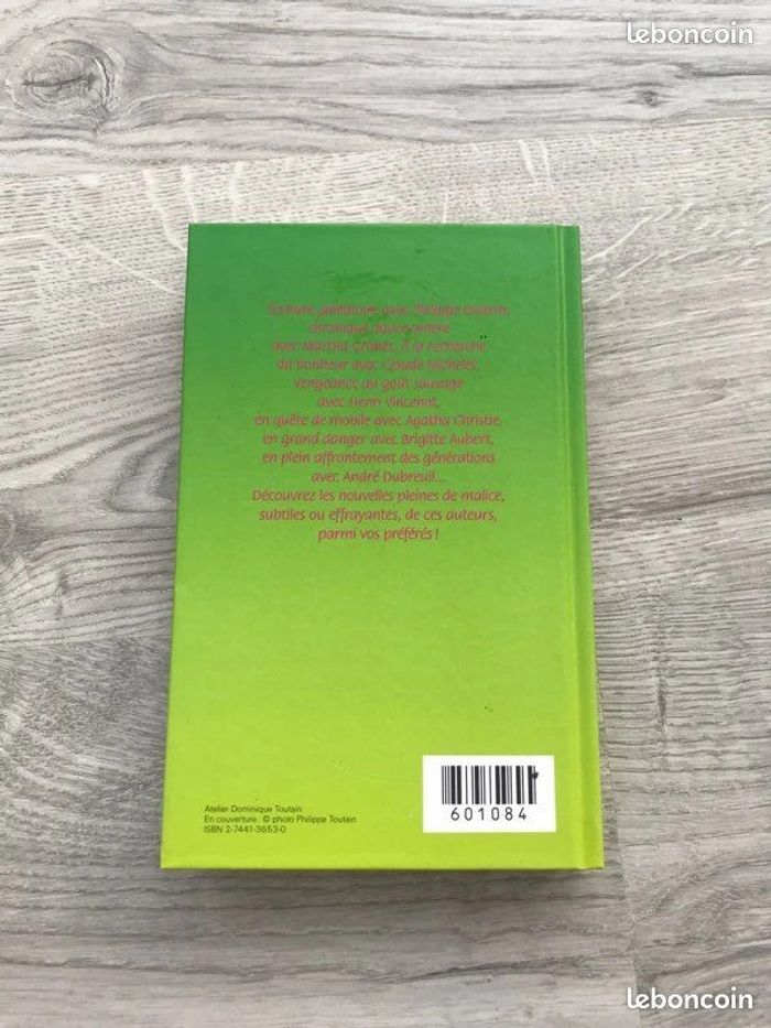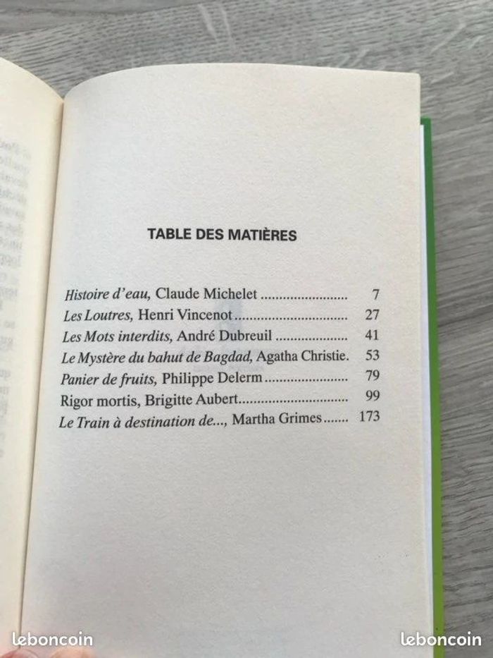 Recueil de sept nouvelles / courtes fictions / courts romans d'auteurs connus : - Histoire d'eau de Claude Michelet, - Les loutres d'Henri Vincent, - Les mots interdits d'André Dubreuil, - Le mystère du bahut de Bagdad, - Panier de fruits de Philippe Delerm, - Rigor mortis de Brigitte Aubert, - Le train à destination de... de Martha Grimes Thèmes : policier, chronique, bonheur, vengeance, policier, danger, famille, génération, malice, subtile, effrayant Couverture rigide 2000 291 pages France loisirs Prix ferme Maison non fumeur book in French / libro en francés / livro em francês / boek in het frans / libro in francese Pour découvrir mes nombreux autres livres à vendre, faire un lot pour optimiser les frais de port et bénéficier d'une réduction automatique, cliquez sur #athilielivre #athilieroman #athiliepolicier #athilienouvelle #athilieneuf