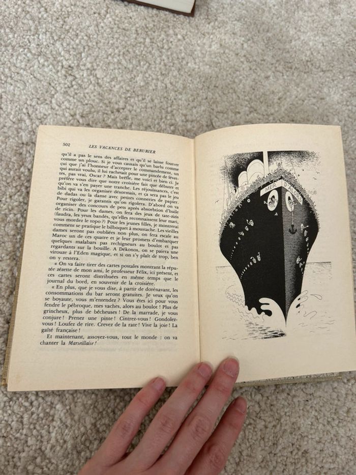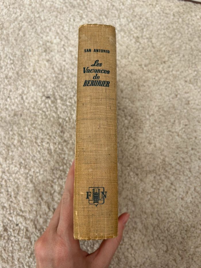 Livre ancien, illustré en couleurs, grand format, couvertures rigides : Les vacances de Berrurier - San Antonio Les Vacances de Bérurier est un roman policier du personnage fictif San-Antonio, écrit par Frédéric Dard Le Vieux réussit à convaincre San-Antonio, Bérurier et Pinuche d'embarquer sur le « Mer d'Alors », un bateau de la compagnie Pacqsif, à la demande du PDG de celle-ci, Gaumixte. L'objectif est de résoudre les mystérieuses disparitions qui ponctuent chaque croisière du bateau. Afin de faire plus authentique et plus naturel, chacun embarque avec ses proches : San-Antonio avec sa mère, Pinuche avec sa femme, Bérurier avec sa femme Berthe et sa nièce Marie-Marie, tandis que le Vieux embarque son chauffeur et laisse à quai sa maîtresse et soi-disant nièce Camille. Embarque également le dernier amant en date de Berthe Bérurier, monsieur Félix. L'enquête tourne d'abord à la catastrophe, puisque deux personnes disparaissent dès le premier jour de la croisière : le second du commandant et l'épouse du ministre de l'Intérim. Deux autres passagers sont également retrouvés assassinés. D'autre part, la discrétion est mise à mal par les scandales successifs menés par les Bérurier, au point que Gaumixte, excédé, finit par boucler tout le monde à fond de cale, dans la cellule des émigrants. Il faudra une brusque tempête et le bon sens de Marie-Marie pour que la vérité se fasse jour et que les disparus soient retrouvés. D'autres livres du même auteur en vente dans mon dressing : #AthilieSanAntonio 502 pages 1989 Fleuve noir !!! Pas de Vinted Go ou UPS pour moins de 10 euros !!! maison non fumeur Book novel in French - libro novela en francés - Franstalige roman - Romanzo in lingua francese - romance em língua francesa - Buch Roman auf Französisch Pour découvrir mes nombreux autres livres à vendre, faire des lots et bénéficier de réduction automatique, cliquez sur #Athilielivre #Athilieroman #Athiliehumour #Athiliepolicier