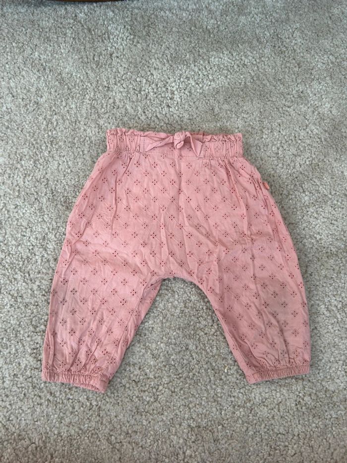Joli pantalon rose poudré en dentelle type sarouel - Obaibi - 6 mois - photo numéro 1