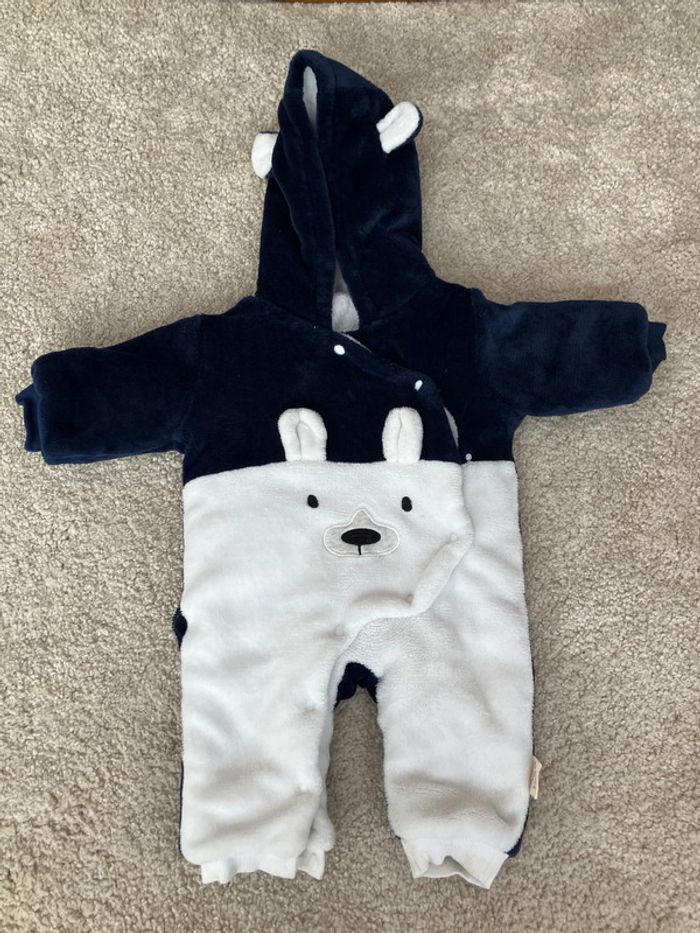 Combipilote nounours en velours pour bébé avec capuche - 9/12 mois - Arpa - photo numéro 1