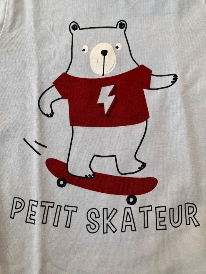 Tee shirt bleu clair manches longues skateur comme neuf garçon - 9 mois - vert baudet - photo numéro 3