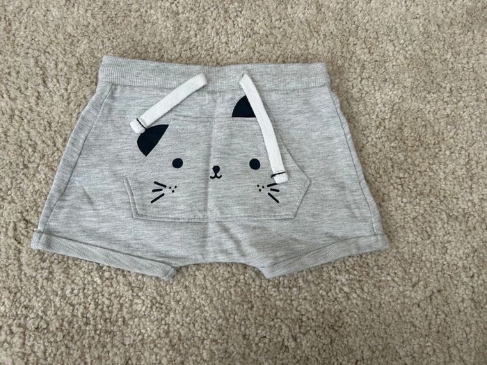 Mini short gris comme neuf tête chat 🐱 mixte - kiabi - 9 mois - photo numéro 1