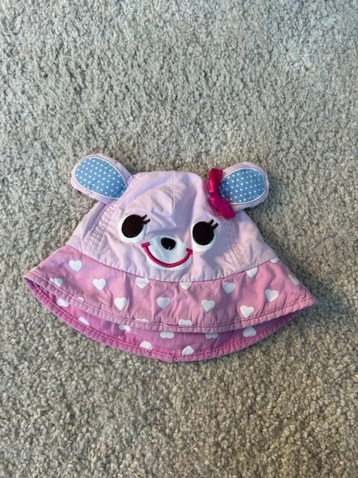 Couvre chef pour bébé fille, avec rebord pour protéger les yeux, le visage et la nuque du soleil, type bob Broderie avec tête d’animaux type ours, oreilles qui dépassent et cœurs Taille : 44 cm environ de 3 à 6 ou 9 mois selon les bébés Pas de marque sur l'étiquette Idéal cet été à la plage, à la piscine ou tout simplement en balade ou à la demie-saison (printemps ou automne) Porté mais bon état général !!! Pas de vinted go ni UPS pour moins de 10 euros !!! hat / Mütze / chapéu / sombrero / hoed / cappello Maison non fumeur Nombreux vêtements bébé fille, garçon et mixtes à vendre pour vous permettre de faire un lot Pour découvrir mes autres articles enfants, faire un lot bénéficier d'une réduction automatique, cliquez sur #athilieenfant #athilie9mois #athilie6mois #athilie3mois #athilievetement #athiliechapeau #athiliefille #athilieuneuro #athiliebaignade #athilieété #athilieprintemps