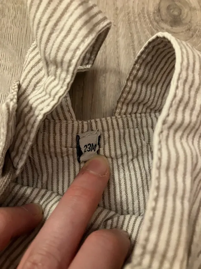 Salopette courte beige à rayures, avec poches et motifs écritures sur le devant, style baroudeur/randonneur avec les poches cargos sur le coté Ouverture entre les jambes pour permettre le changement de couches facilement Très bon état Parfait pour l’été ou les journées chaudes de la semi-saison (printemps, automne) Marque : non précisée Taille : 23 mois !!! Pas de vinted go ou UPS pour moins de 10 euros !!! Maison non fumeur Nombreux vêtements bébé à vendre pour vous permettre de faire un lot salopette korte broek/ Latzhose Shorts / dungarees shorts / pantaloncini salopette / calções de banho / pantalón corto con peto Pour découvrir mes autres articles enfants, faire un lot bénéficier d'une réduction automatique, cliquez sur #athilieenfant #athilie24mois #athilie23mois #athilie2ans #athilievetement #athiliehaut #athiliegarcon #athiliepantalon #athilieshort #athiliesalopette #athiliecombinaison
