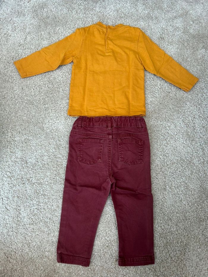 Tenue complète : pantalon bordeaux haut monstre jaune garçon - 18 mois - boite à malice et orchestra