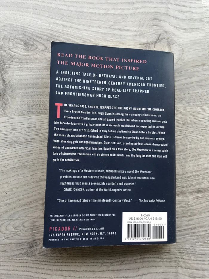 The revenant (N. one who has returned, as if from the dead.) de M. Punke Récit inspiré d'une histoire vraie qui a donné le film éponyme / Novel that inspired the epic movie starring Leonardo DiCaprio and Tom Hardy. Aventure, vengeance/revenge, western, trappeur, états-Unis, Indien, suspense 1823 Au cours d'une expédition dans les Grandes Plaines, le trappeur Hugh Glass est attaqué par un grizzly. Défiguré, le corps déchiqueté, il est confié à 2 volontaires chargés de le veiller jusqu'à sa mort puis de l'enterrer. Ses gardiens décident d'abandonner le blessé. En plein territoire indien, seul, désarmé et à bout de forces, il survit. Son unique motivation : la vengeance. Commence alors la légende : un homme hors du commun qui va parcourir 5000km kilomètres, depuis le Dakota jusqu'au Nebraska, pour retrouver ceux qui l'ont trahi. "L'une des plus grandes histoires de la conquête de l'Ouest" H.Glass isn’t afraid to die. He’s done it once already. 1823 The trappers of the Rocky Mountain Fur Company live a brutal frontier life. He is one of the most respected men in the company, an experienced frontiersman and an expert tracker.But when a scouting mission puts Glass face-to-face with a grizzly bear, he is viciously mauled and not expected to survive. 2 men from the company are ordered to remain with him until his inevitable death. But, fearing an imminent attack, they abandon him, stripping him of his prized rifle and hatchet. He is driven to survive by one all-consuming desire: revenge. With shocking grit and determination, he sets out on a 3000 miles journey across the harsh American frontier, to seek revenge on the men who betrayed him. 262 p. Picardor 2015 book in English / libro en Inglés / livro em Inglês / boek in het Engels / libro in inglese Pour découvrir mes autres livres, cliquez sur : #athilielivre #athilieroman #athiliehistoire #athilievoyage #athiliebiographie #athiliepolicier
