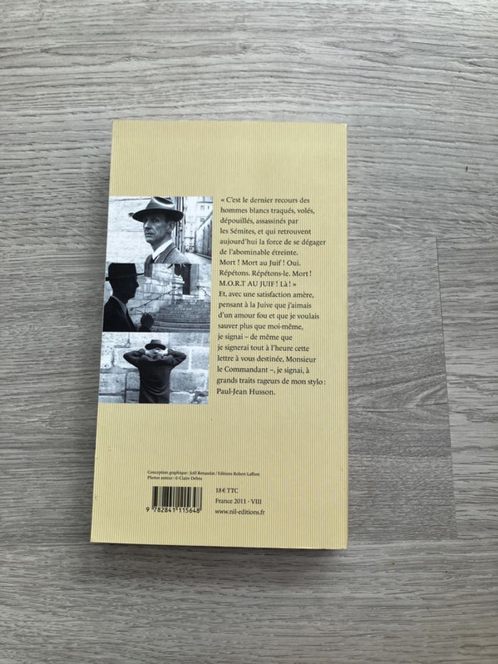 Roman : Monsieur le Commandant de Romain Livre grand format, couvertures souples Slocombe « Monsieur le Commandant, Ces lignes, que vous recevrez ce soir, il me serait facile de vous les adresser sous le couvert de l’anonymat… » À « Monsieur le Commandant », Paul-Jean Husson adresse cette terrible lettre. Signée de la main d’un intellectuel, écrivain renommé et académicien. Héros de la Grande Guerre également, attaché à la France de Pétain. Après la défaite de juin 40, son fils rejoint les résistants de Londres, laissant derrière lui son épouse Ilse. Paul-Jean Husson en tombe éperdument amoureux. Mais si sa nationalité allemande ne le dérange pas, il en va autrement de ses origines juives. Au point de le pousser aux dernières limites de l’ignominie. Né en 1953 dans une famille franco-britannique, Romain Slocombe est l’auteur de plus de vingt-cinq romans, parmi lesquels La Débâcle et la « trilogie des collabos » (L’Affaire Léon Sadorski, L’Étoile jaune de l’inspecteur Sadorski, Sadorski et l’ange du péché). « Le talent de l’auteur (Slocombe, déguisé en Husson) tient en haleine un lecteur sonné et qui redoute une issue dont il a pourtant deviné qu’elle était fatale. » François Busnel, L’Express « C’est bien simple, dès qu’on ouvre Monsieur le Commandant, on ne peut plus s’arrêter, tant Romain Slocombe maîtrise son affaire. » Franz-Olivier Giesbert, Le Point Editions Nil 2011 260 pages 9782841115648 Acheté 18 euros Book novel in French - libro novela en francés - Franstalige roman - Romanzo in lingua francese - romance em língua francesa - Buch Roman auf Französisch Pour découvrir mes autres livres, faire des lots et bénéficier de réduction, cliquez sur #Athilielivre #Athilieroman #Athilieguerre #Athiliehistoire