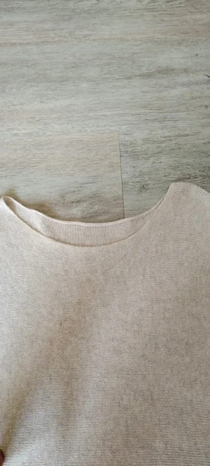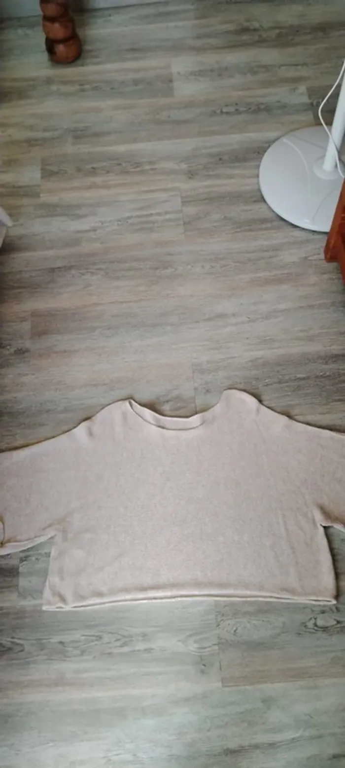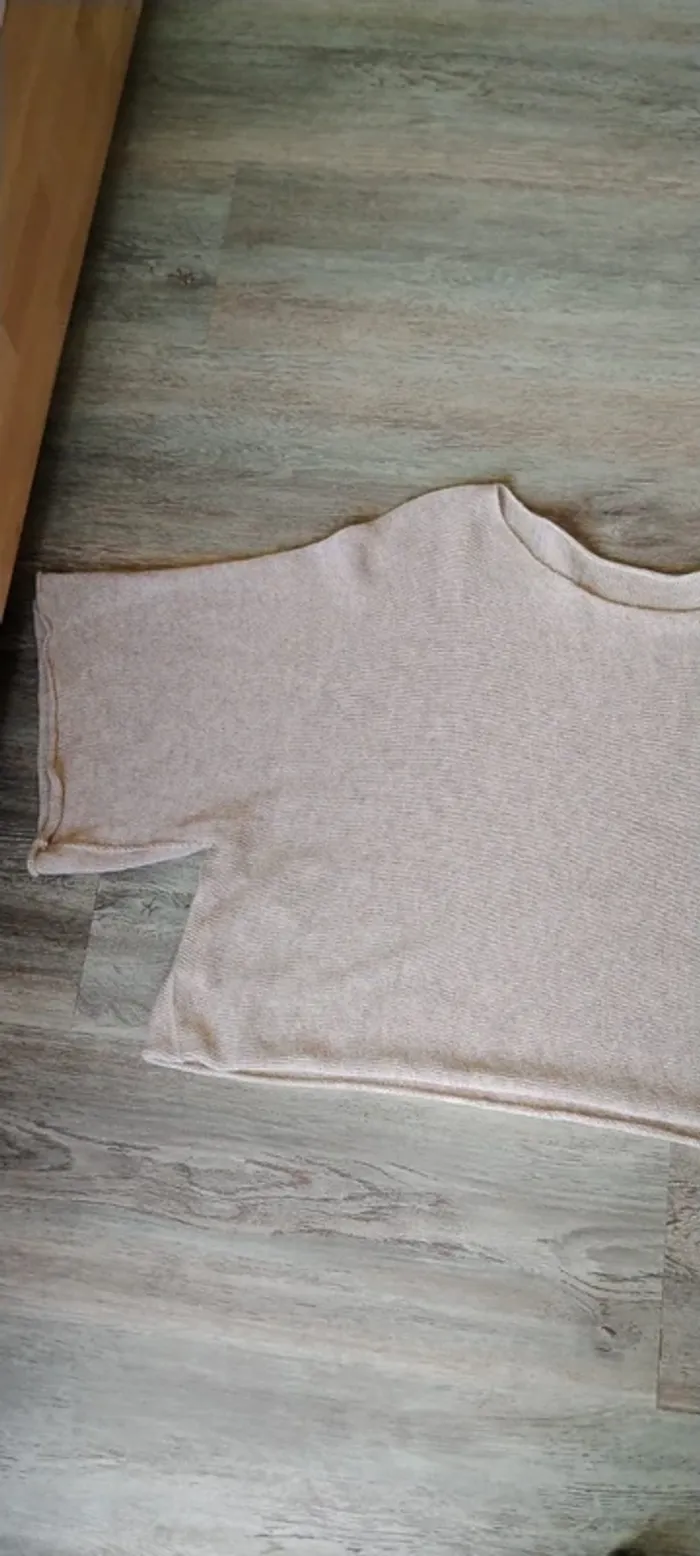 Pull manches courtes style oversize 50 coton 50 acrylique Beige clair Etiquette enlevée pour éviter le frottement