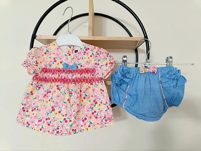 6 mois ensemble été sergent major blouse et short ( porte 1 fois)