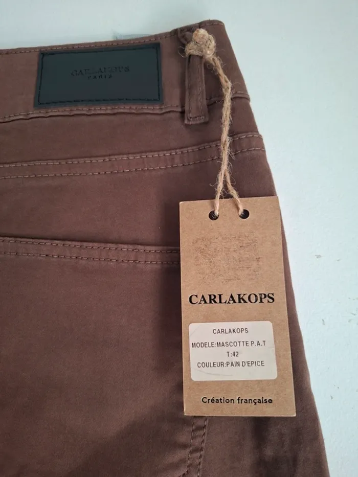 Pantalon marron ajusté- coupe slim et élégant, Carlakops, neuf, taille 42 - photo numéro 1