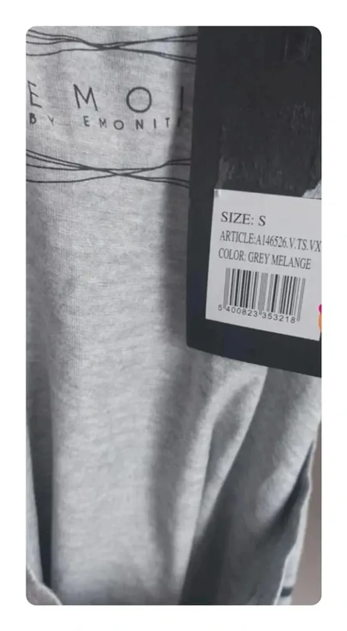 **Tee-shirt manches longues Émoi, neuf, taille S** Matière douce et confortable : 90% coton, 10% viscose. Mesures : - Aisselle à aisselle : 47 cm - Épaule à épaule : 51 cm - Longueur : 60 cm Couleur : Gris chiné (Grey Melange), parfait pour un look décontracté ou pour superposer sous une veste. Jamais porté, encore étiqueté. Idéal pour celles qui aiment les pièces basiques avec une touche d'originalité. #tailles_sofaia971 #tshirt #gris #vintage #rock #casual #mode #Emoi #TailleS #TshirtML #GreyMelange #Neuf #ModeFemme #Coton #Viscose #StyleDécontracté