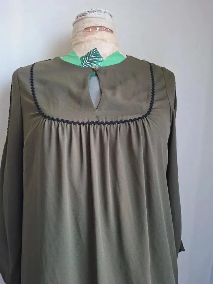 **Robe Laura Bernal** - Neuve, taille 38 - Avec doublure en dessous - Matière 100% polyester - Dimensions : Aisselle à aisselle 44cm, épaule à épaule 33cm, longueur 89cm #taille38_sofaia971 #LauraBernal #robe #neuve #taille38 #mode #fashion #doublure #polyester #vinted #bohème #kaki #chic #élégance #casual