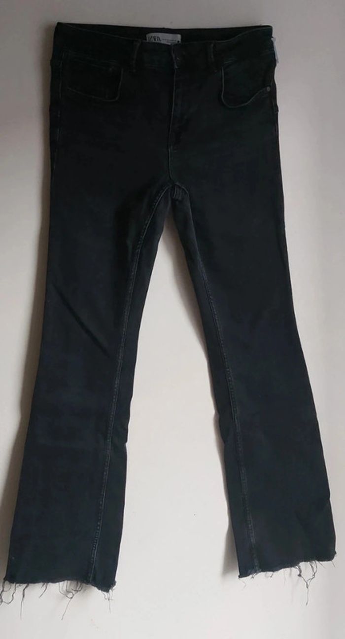Jean noir flare Zara neuf - taille 42 - ourlets effilochés tendance - photo numéro 3
