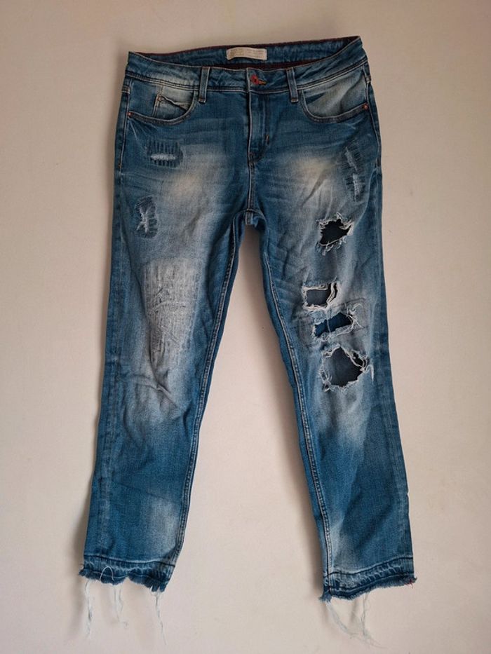 Jean destroy tendance- look streetwear assuré, ZARA, en très bon état, taille 38 - photo numéro 1