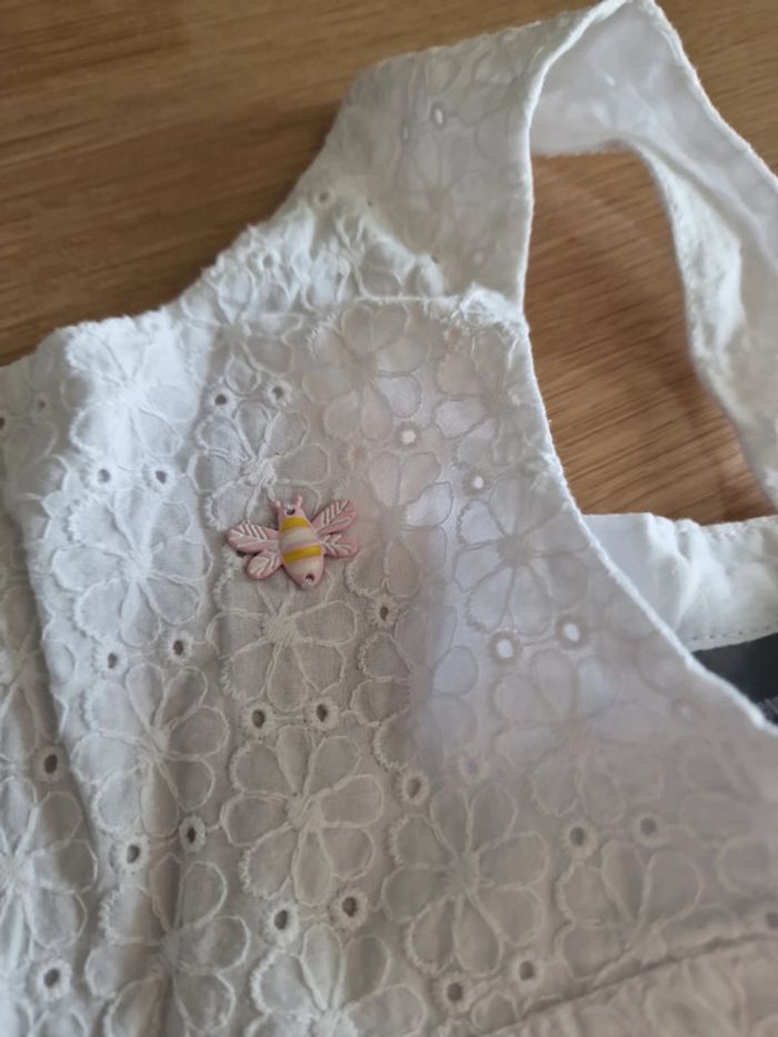 Robe blanche avec broderie anglaise et petite abeille - photo numéro 2