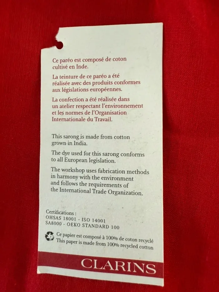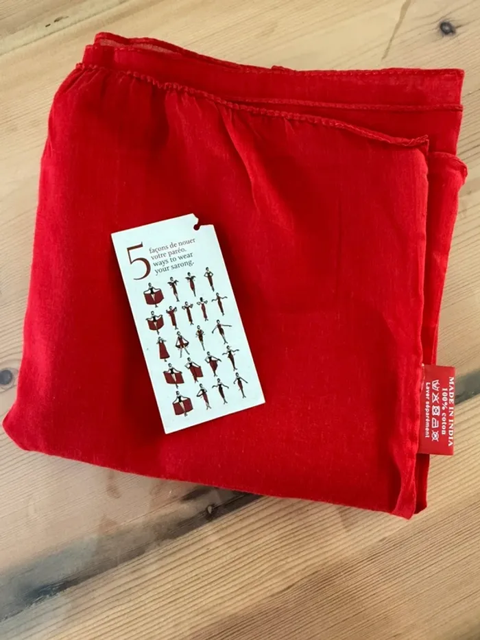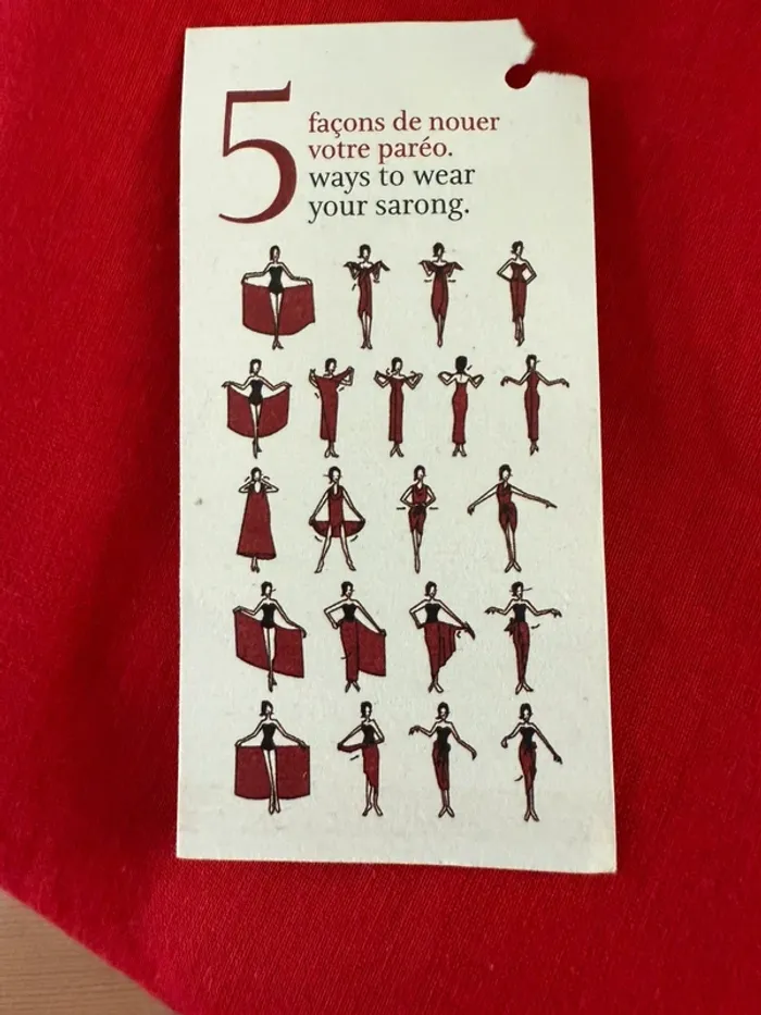 Les différentes façons de porter ce paréo sont sur l'étiquette. Made in Indian