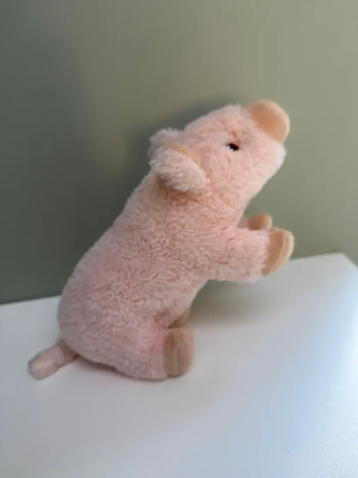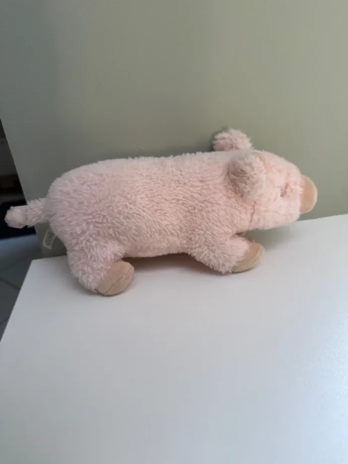 Peluche cochon rose. Bille a ses fesses pour le faire tenir comme sur la dernière photo #familleperunpeluche
