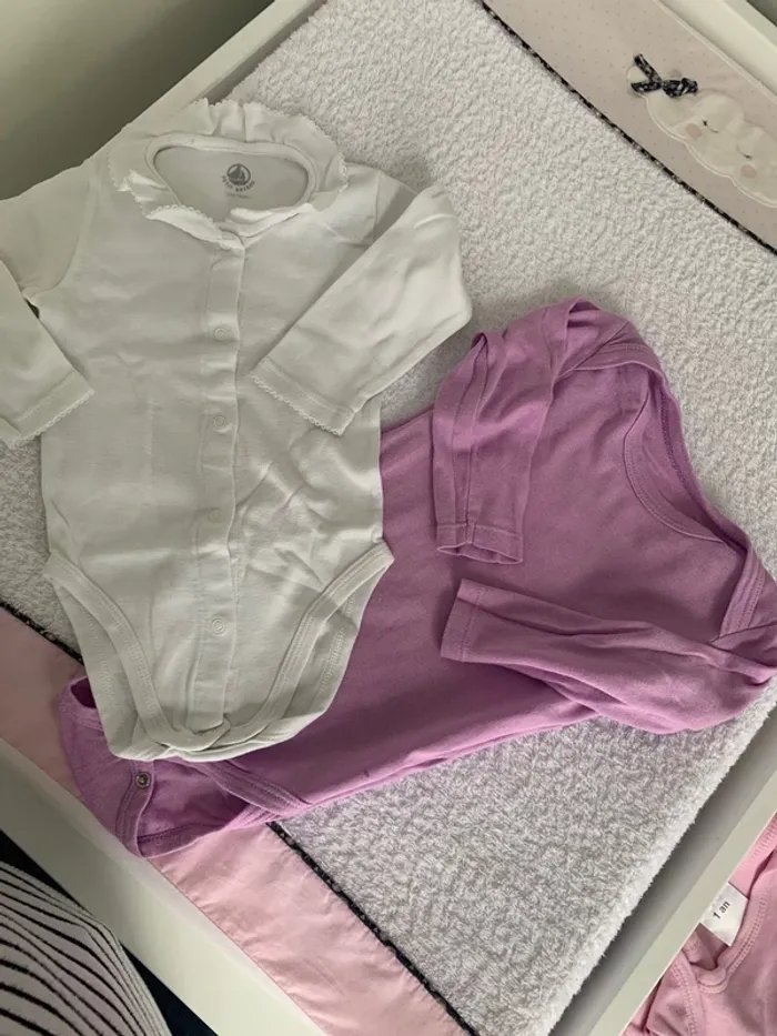 le blanc c’est petit bateau et le violet kitchoun. les 2 sont en très bon état. #familleperun12mois