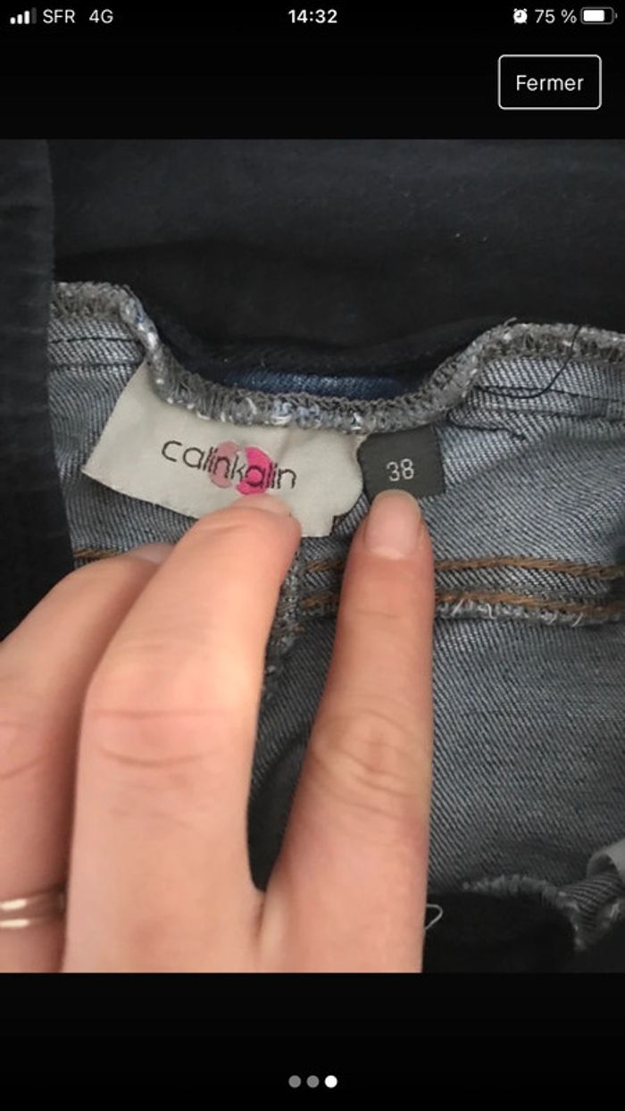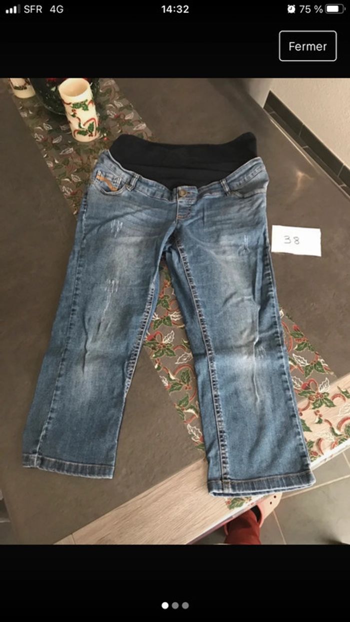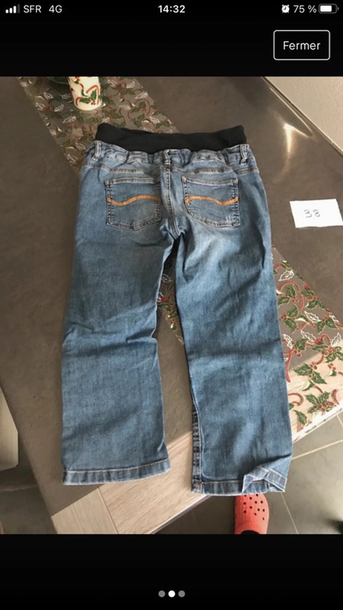 Pantacourt jean de grossesse bleu