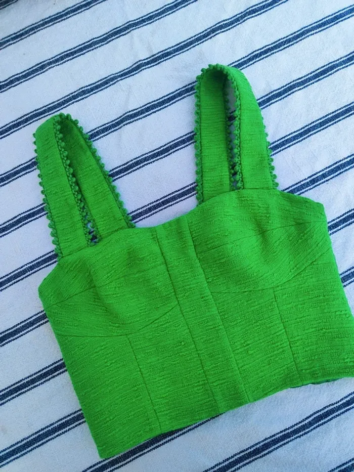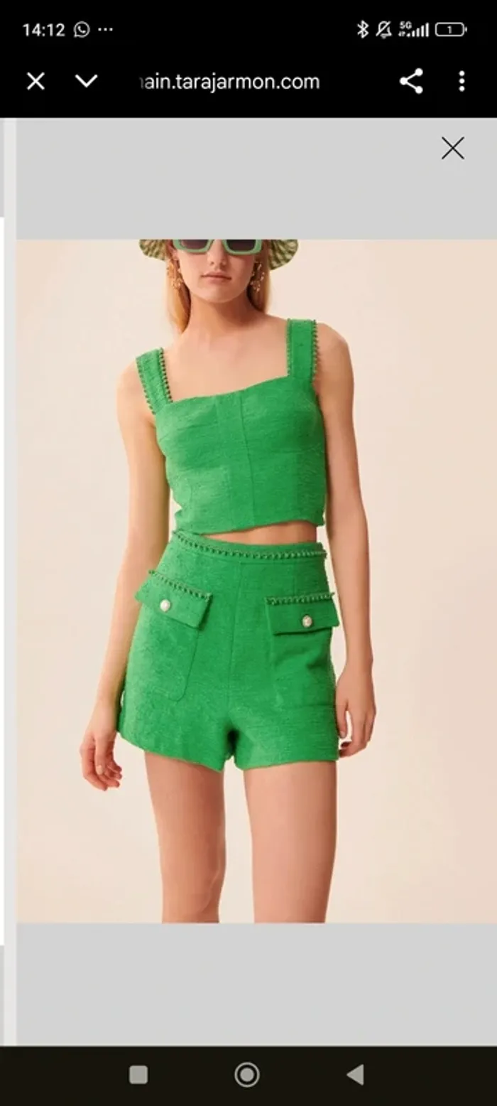 Sublime top en tweed vert tara jarmon Taille 34 Se faire avec des agrafes sur le côté Neuf 195€