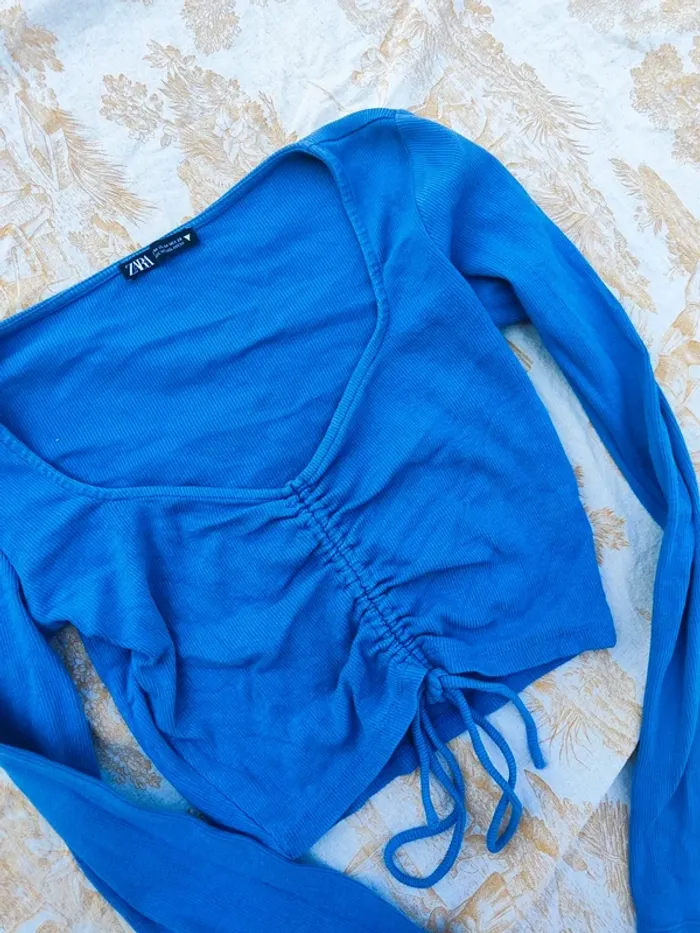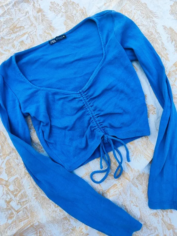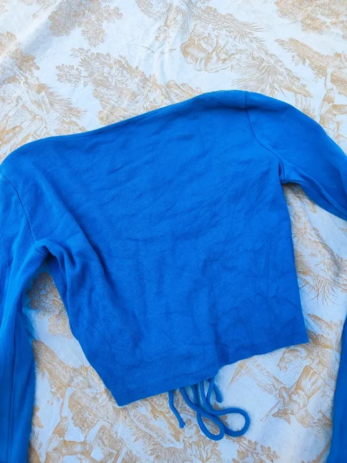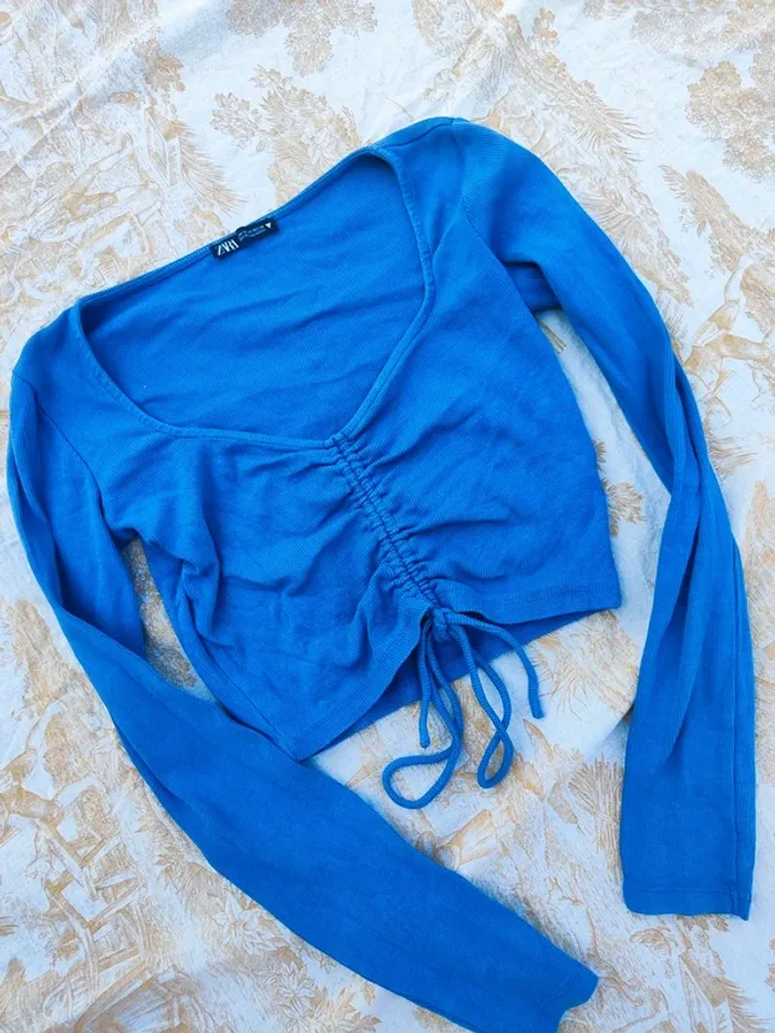 Top court avec laçage sur l'avant donnant un effet fronces très joli Bleu, manches longues Taille M Zara