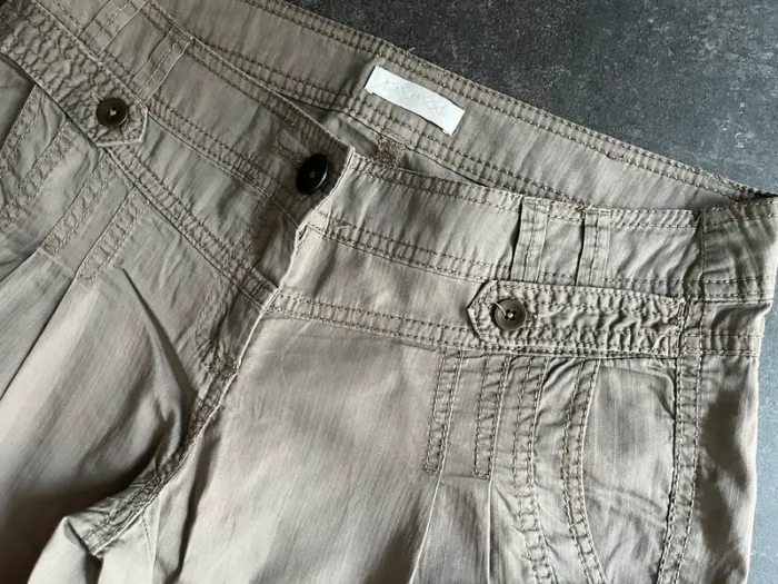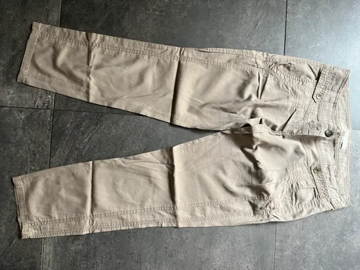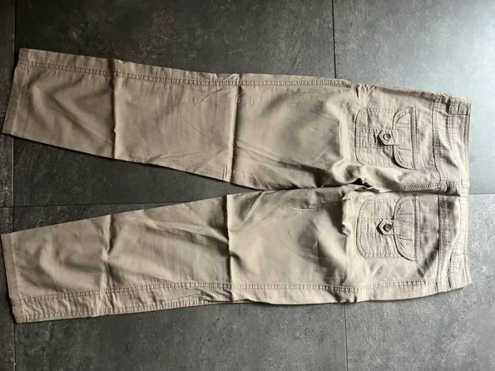 Pantacourt léger Promod 36 Couleur difficile à définir : kaki clair, marron/gris ? Taille basse PS : j’ai aussi le bleu à vendre 😉 #petchou94