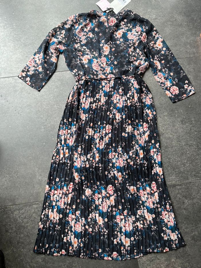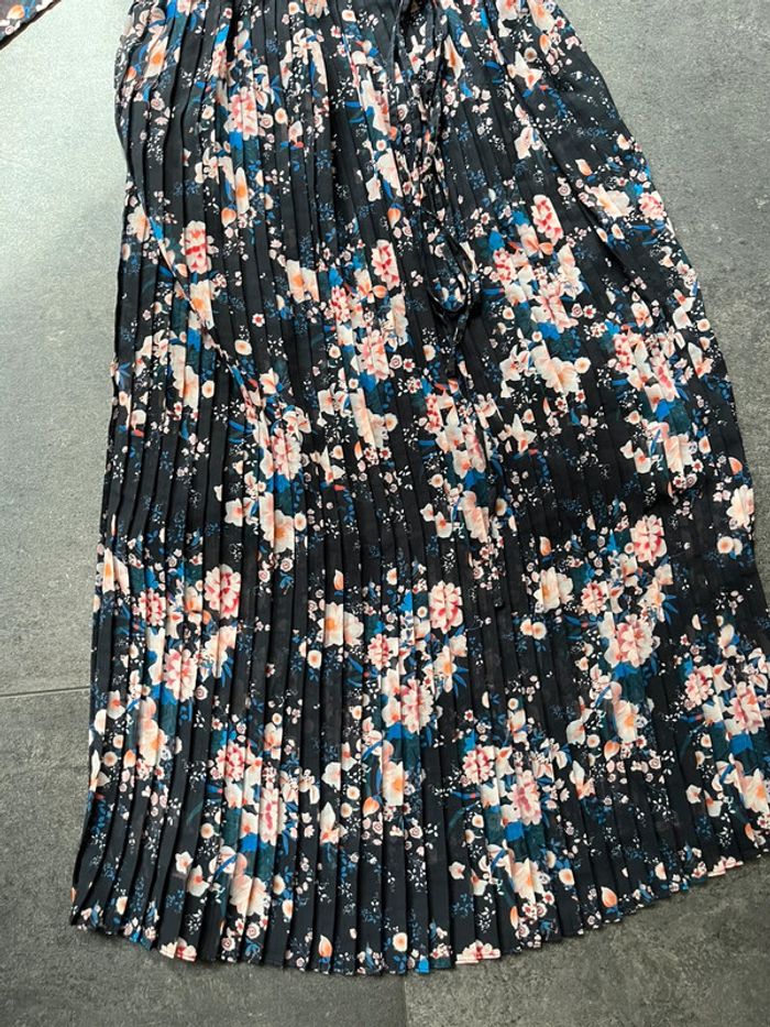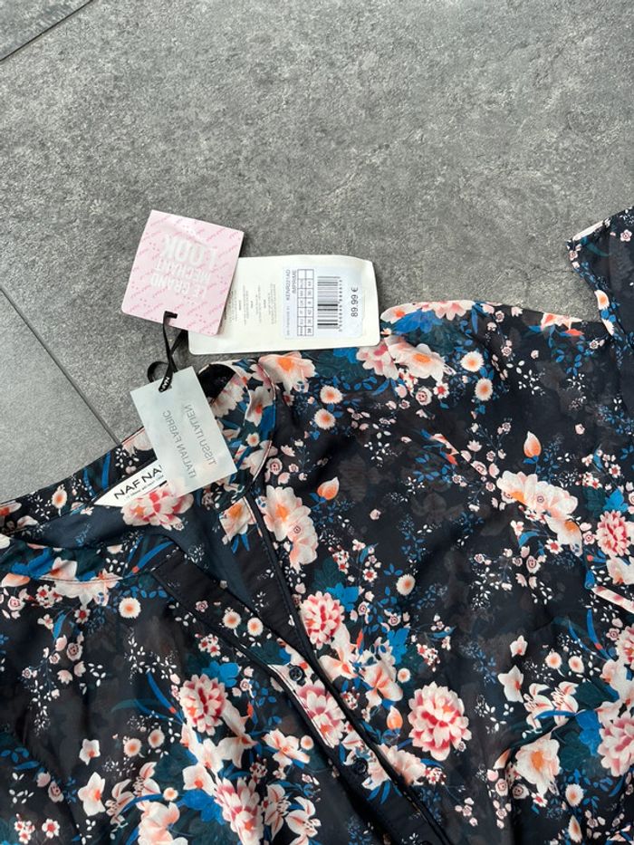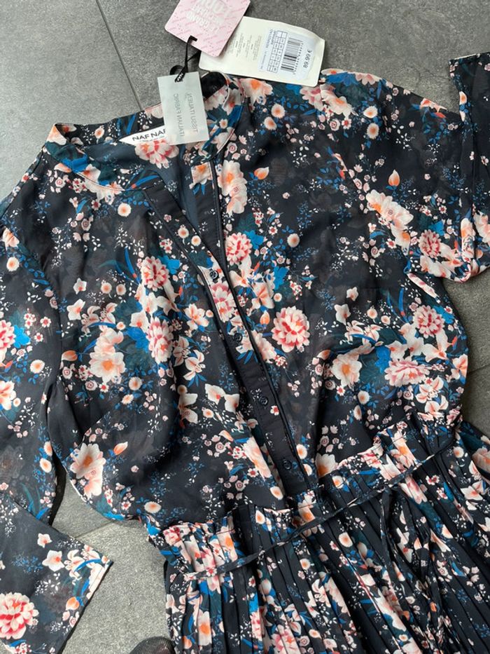 Robe longue Naf Naf, neuve avec étiquette Taille 38 La partie haute est transparente, manches 3/4 La partie basse : jupe plissée avec doublure jusqu’au genoux Tissu italien Prix neuf : 89.99€ 100% polyester