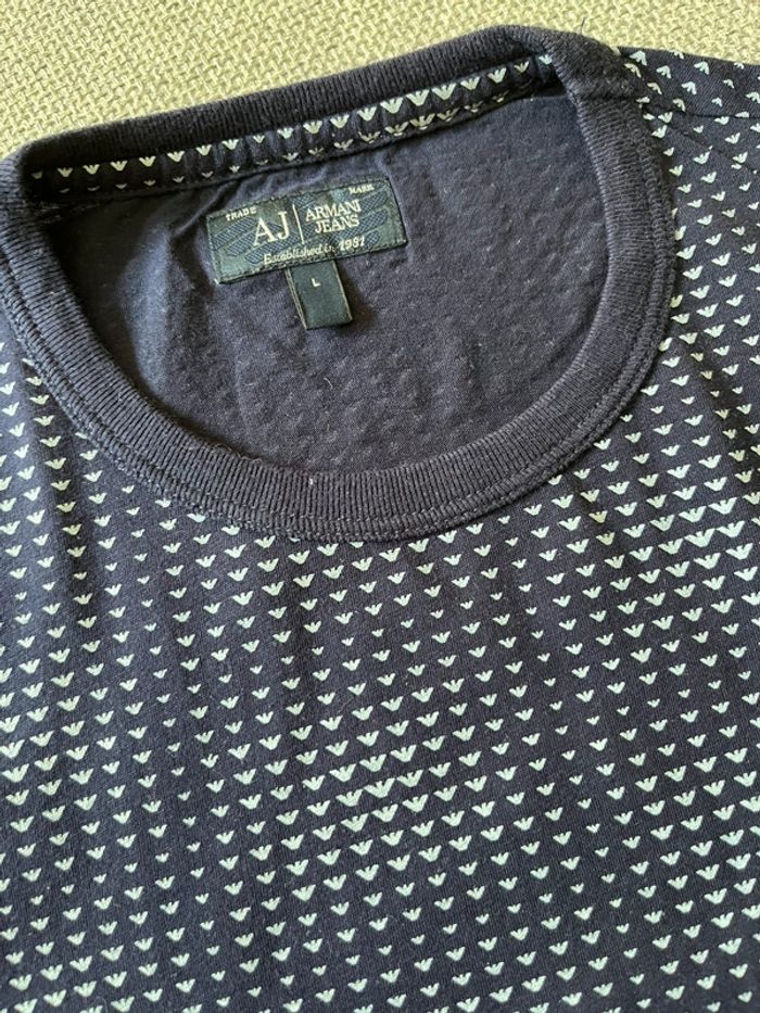 T-shirt manches courtes Armani Jeans Taille L Coupe près du corps, Slim fit Bleu marine/ blanc Très peu porté