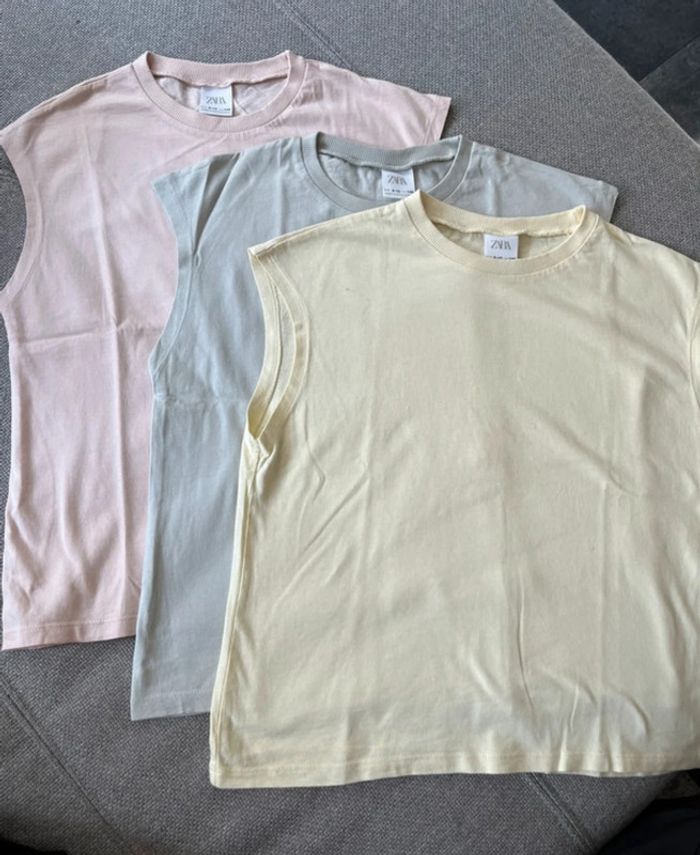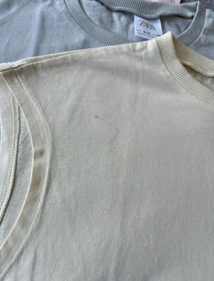 Lot de 3 t-shirts Zara taille 9-10 ans (140 cm) À noter : petit trace de stylo sur le jaune au niveau de l’épaule #petchou94