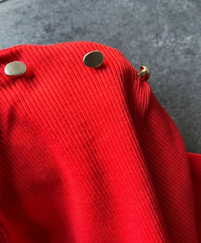 Top à manches courtes NafNaf rouge Boutons dorés sur les épaules Taille M Neuf avec étiquette 90% coton 10% polyamide #petchou94