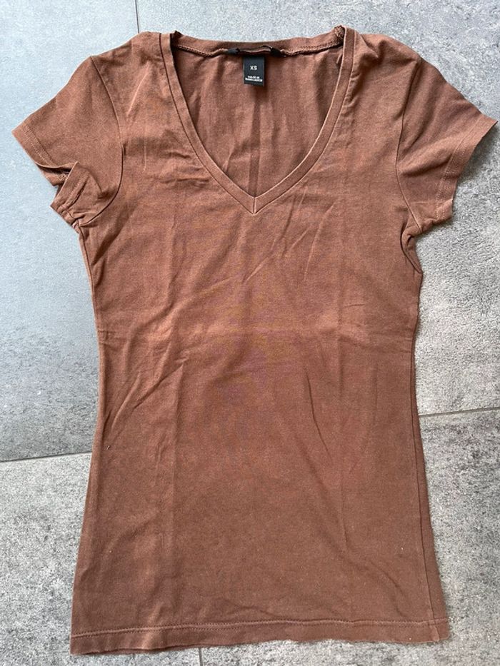 T-shirt manches courtes col V Marque H&M, taille XS, coloris marron