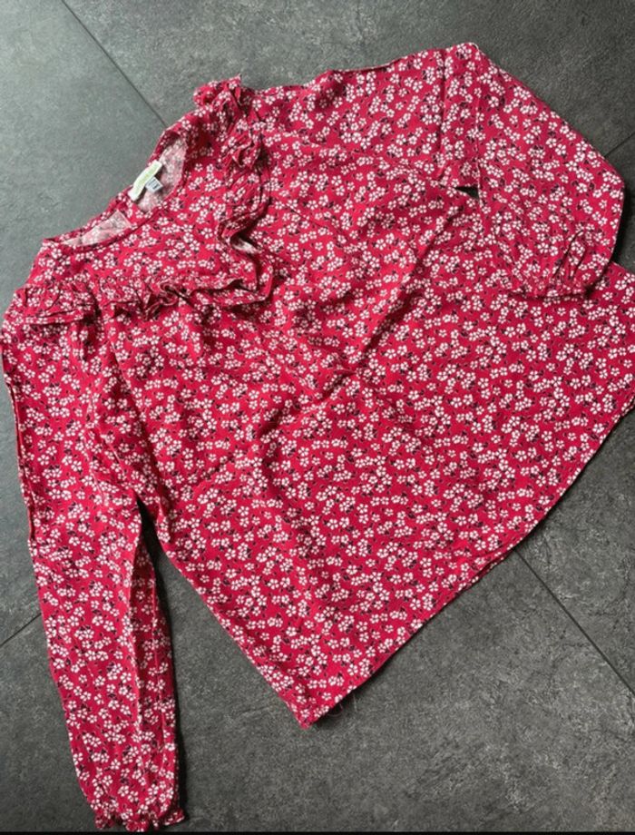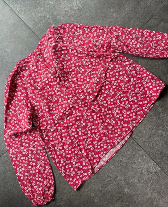 Blouse/ top / haut Vertbaudet taille 9 ans 132 cm Rouge à fleurs blanches/bleu #petchou94