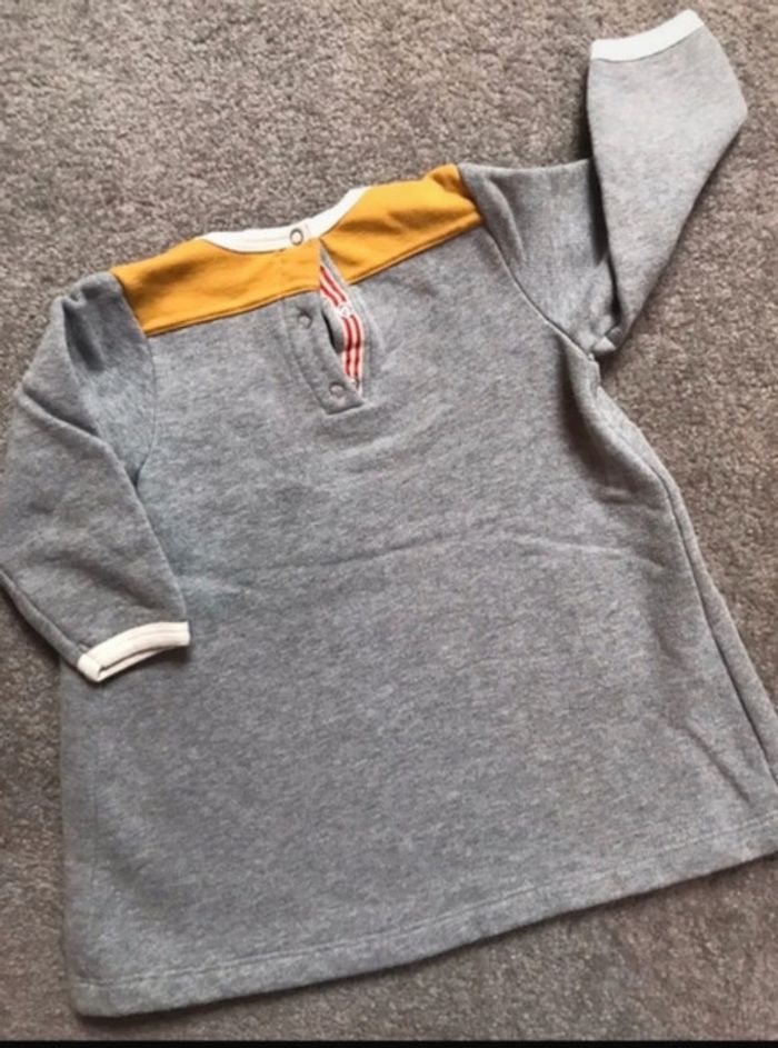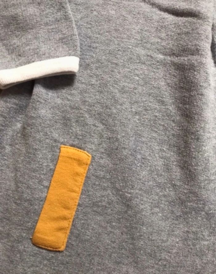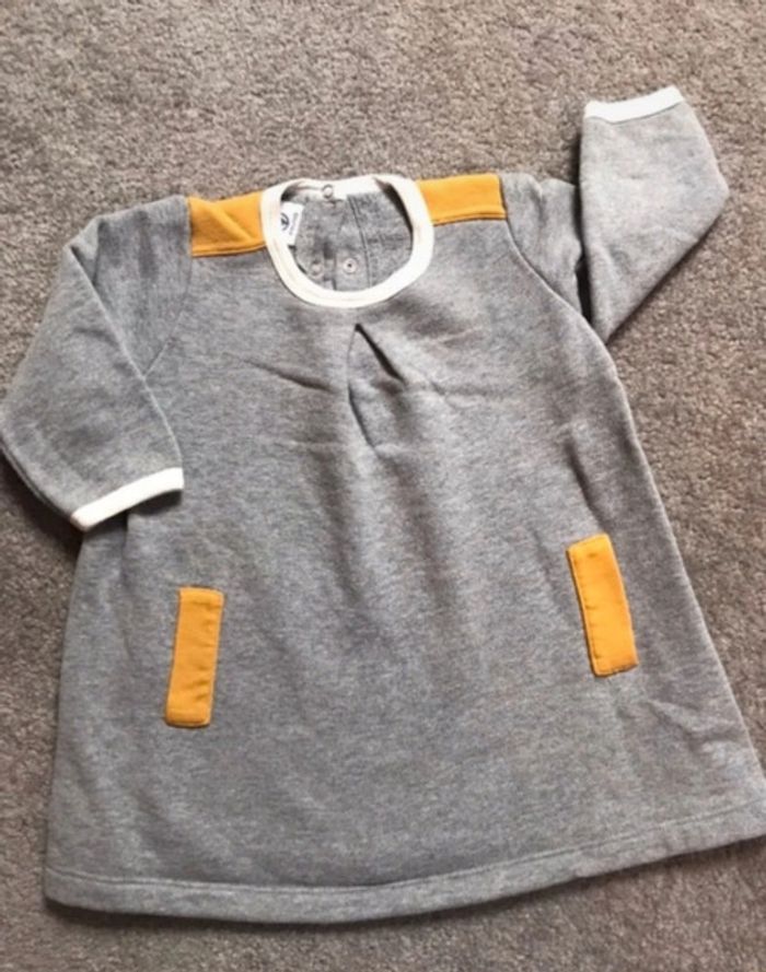 Robe hiver Petit Bateau 12 mois- 74 cm Gris, col et bouts de manches crème et détails jaune moutarde 100% coton #petchou94