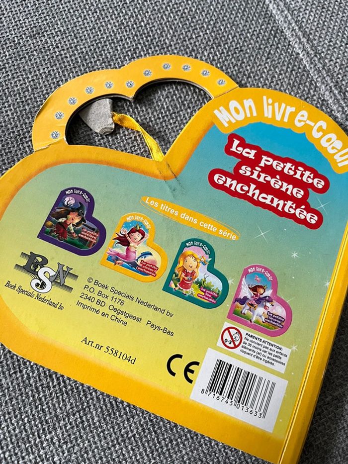Livre « Mon livre cœur, la petite sirène enchantée » Ne se ferme plus car manque une partie du scratch Si vous prenez d’autres articles, je mettrai ce livre en cadeau 😉