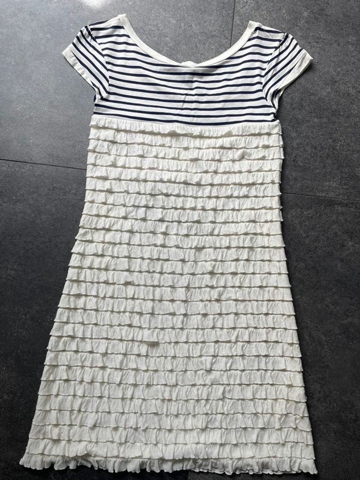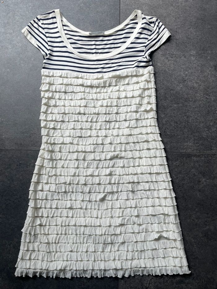 Robe femme Promod taille 2 (M) Marinière à volants Couleur blanc cassé / bleu marine Portée 2 fois max