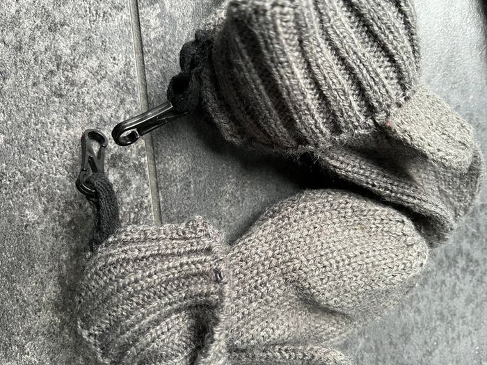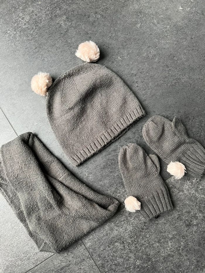 Bonnet, moufles, tour de cou snood gris 4-5 ans