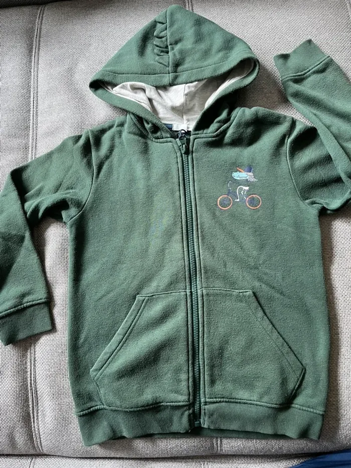 Gilet zippé à capuche garçon Vertbaudet 8 ans Vert Capuche avec détail sympa (crête de dragon)