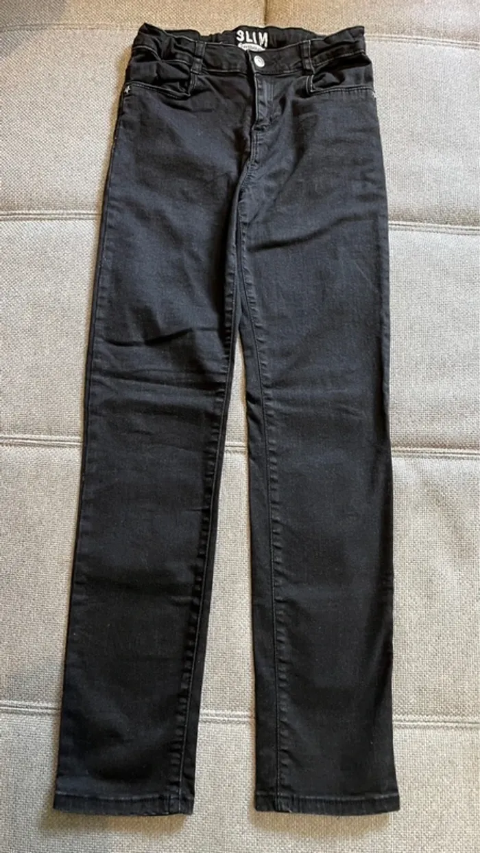 Jean Slim fille Vertbaudet Noir Taille 12 ans (152 cm) Taille ajustable