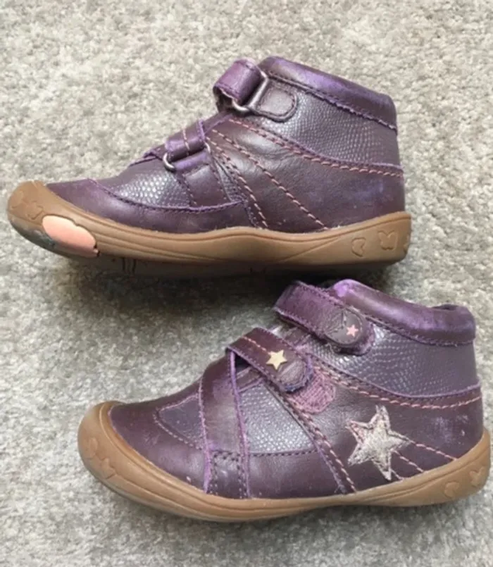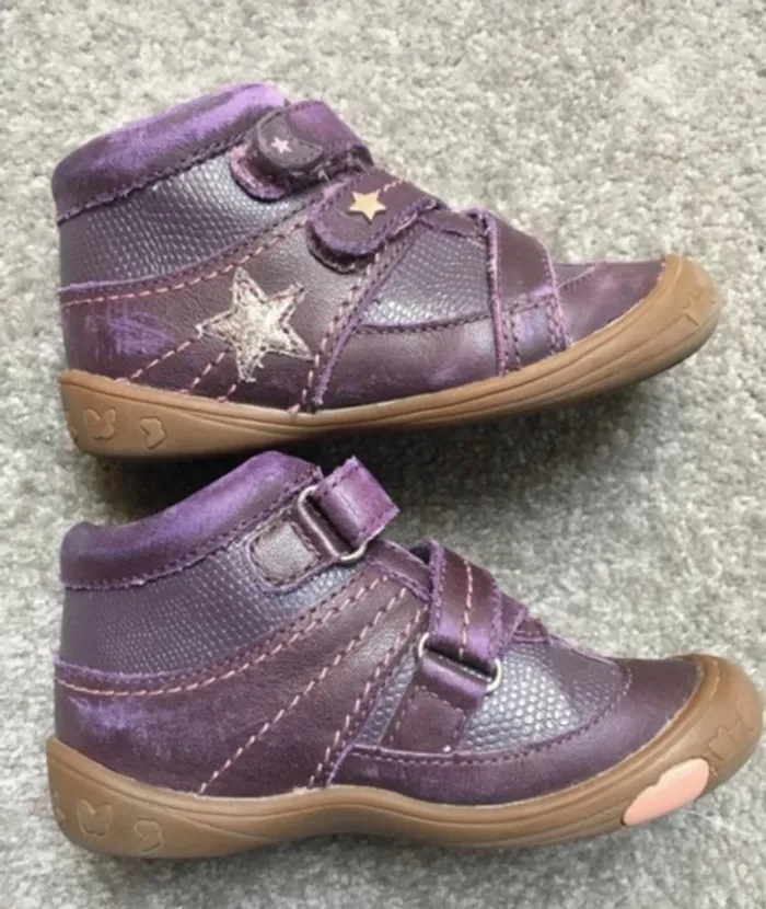 Bottines violettes en Cuir à scratch Vertbaudet Taille 26 Marques d'usure (type frottements) mais semelle en bon état #petchou94