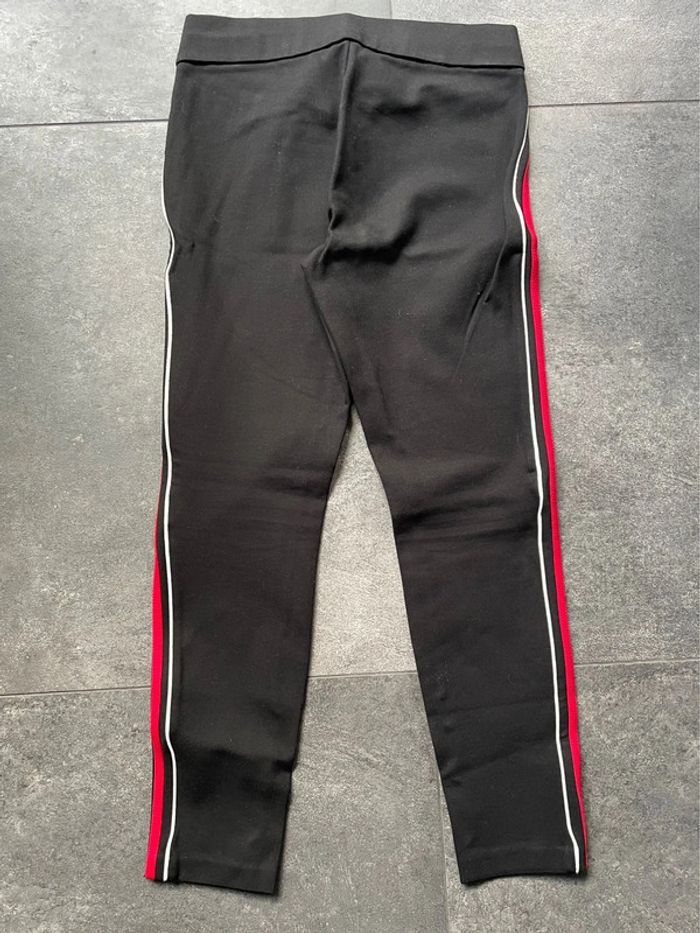 Legging noir, Zara, taille L. Bandes rouges et blanches sur le côté. #petchou94