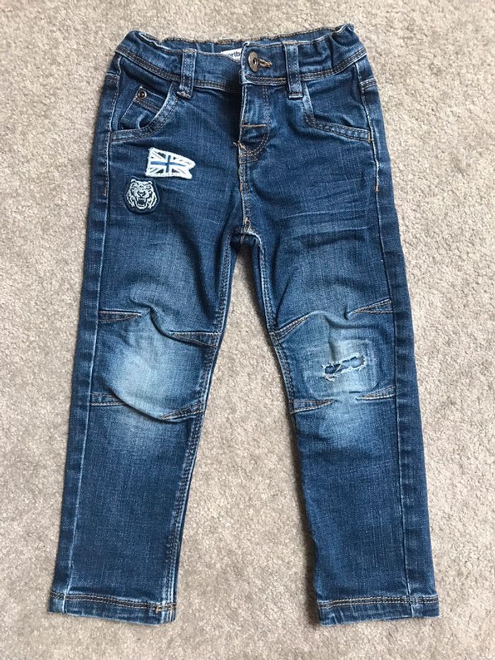 Jean Vertbaudet 3 ans - 94 cm Taille ajustable, fermeture éclair et bouton pression Genoux légèrement marqués mais la déchirure est d’origine 😉 #petchou94
